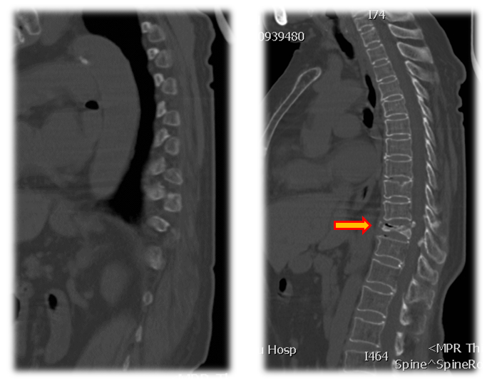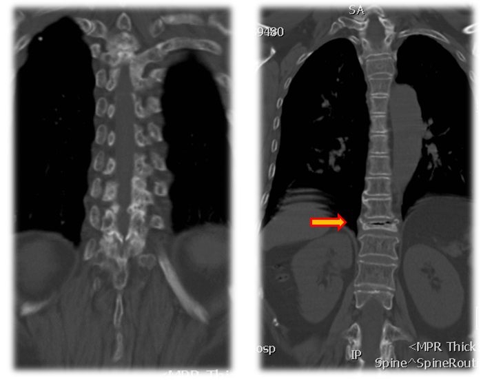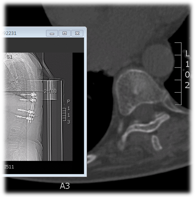 术前检查:2月前腰椎CT,无明显骨折征象。