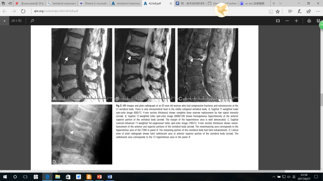 Stage I:X光椎体完好或轻度压缩,MRI显示骨坏死征象椎体高度减少<20%,没有邻近的椎间盘退行性病变。