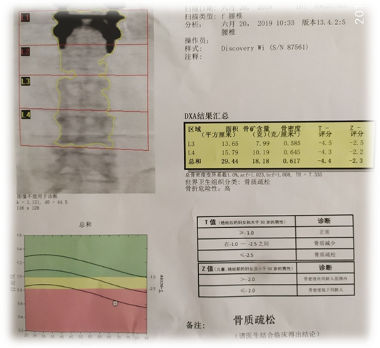 诊断:骨质疏松病理性骨折, Kummell病I期,2型糖尿病。