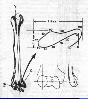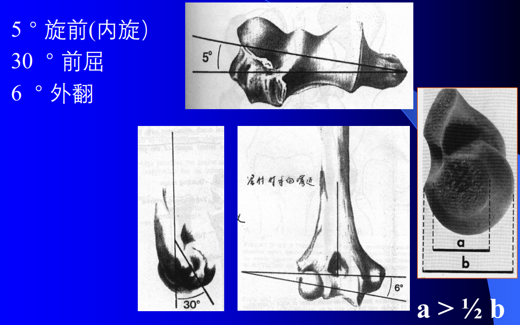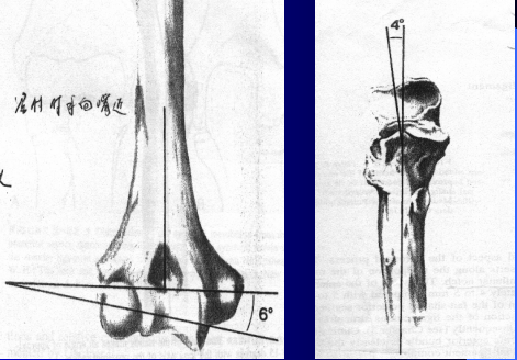 - 平均轴通过内上髁前下、 滑车与肱骨小头中心