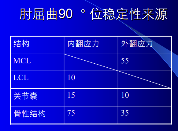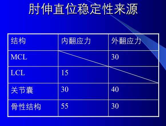 肘关节的稳定性 包括前后、内外翻及旋转稳定性 稳定因素