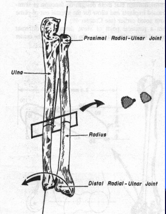 - 桡尺近远侧关节及肱桡关 节共同完成