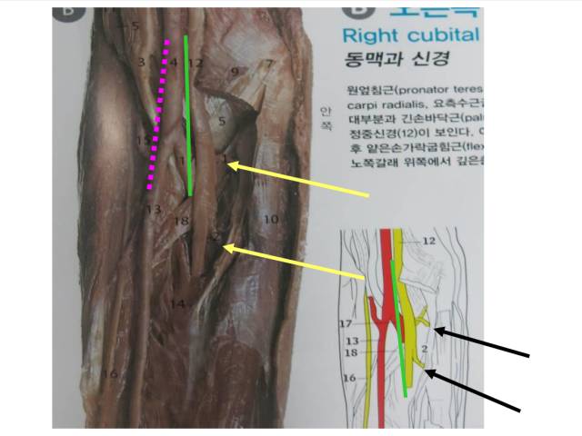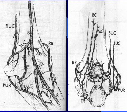 – 尺侧上副动脉与尺侧返动脉背侧支
