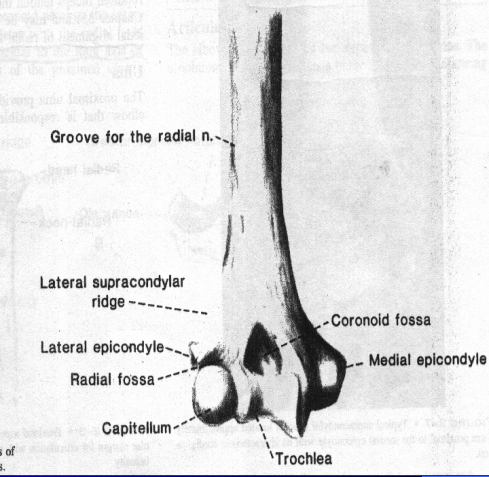 – 冠突窝、鹰嘴窝、桡骨头窝