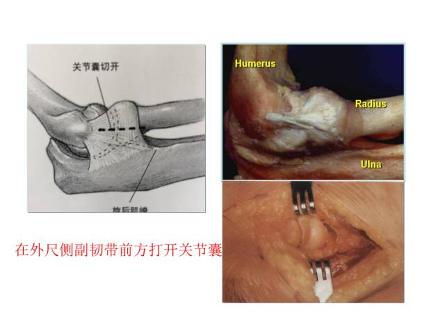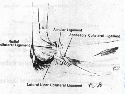 - 尺骨外侧副韧带:屈伸肘时均紧张,是外侧的主要稳定结构