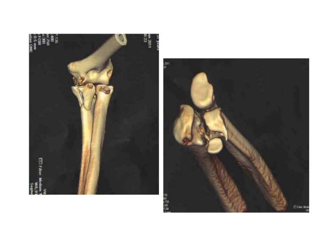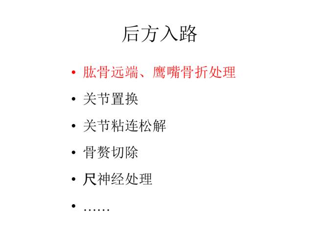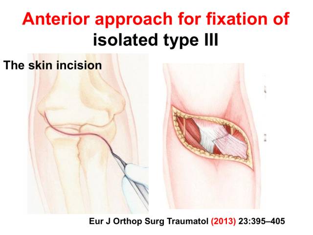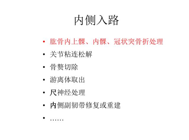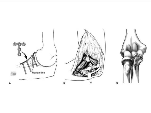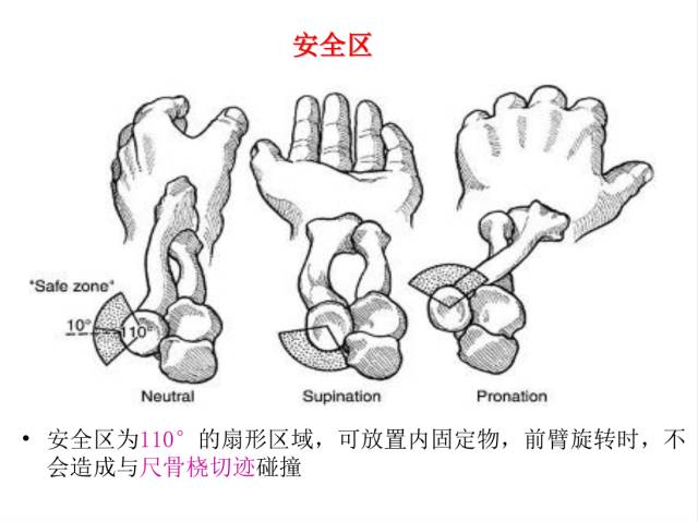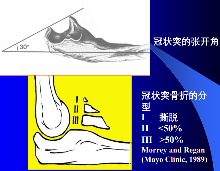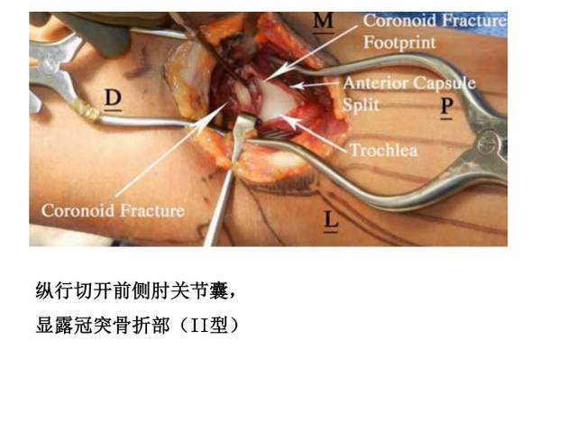- 即使单纯Ⅲ型骨折,在很小的生理应力下也有可能发生后方半脱位,特别是在屈肘60°~105°,支持对Ⅲ型损伤ORIF