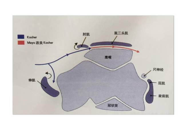 - 后束:内上髁后面至鹰咀内侧,曲肘时紧张