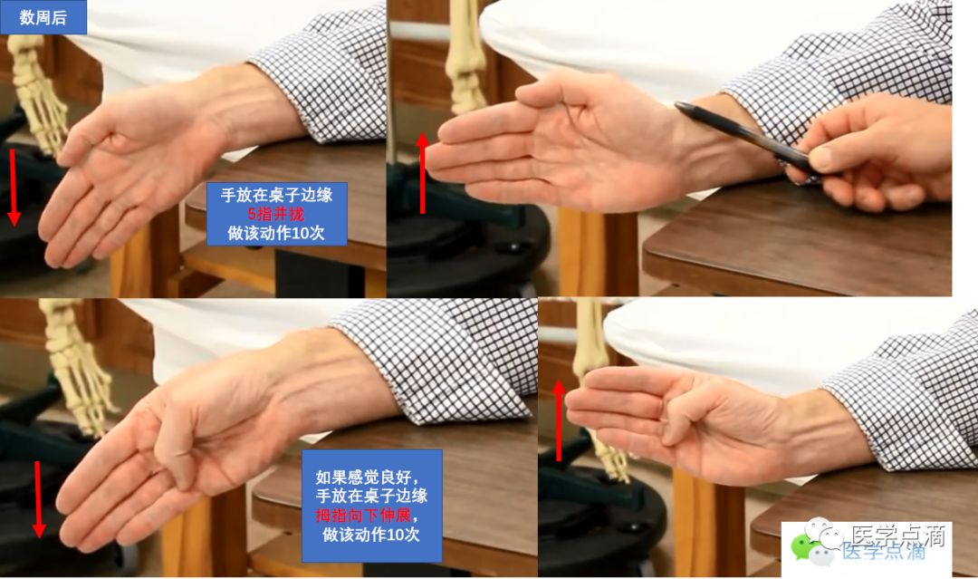 ②、局部制动疗法:早期患者可以采用外固定支具固定患肢,减少局部活动,缓解肌腱在腱鞘内的摩擦,达到治疗目的。但制动可能并不能保证患肢固定在位,且长时间制动可能导致远期活动僵硬。尽管临床上经验性采用制动辅助其他治疗方法,但治疗效果仍存在争议。
