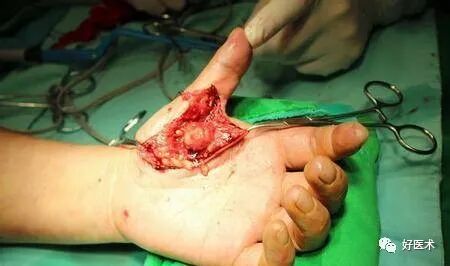 手指屈肌腱狭窄性腱鞘炎 在手掌远端鞘管起始部有明显压痛,大部分患者可于此处触及结节。