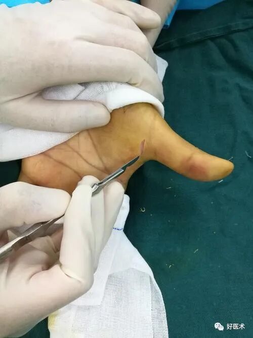 1)直接开放手术:常规手术方式是直接在压痛处切开 ,暴露第1 背侧肌间隔,切开增厚的腱鞘,松解腱鞘,以肌腱 能在腱鞘内自由滑动为标准。结果证实了纵切口较横切口更优。