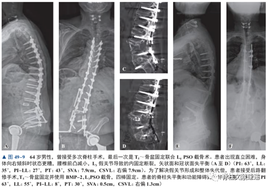 椎间隙的状态决定了采用哪种方式来改善腰椎前凸。对于上次手术或此次计划融合节段内存在未融合椎间隙的患者,椎间融合和(或)后柱截骨术(Ponte或 Smith-Petersen截骨术)有利于改善序列。如果椎间隙已经融合,三柱截骨可以改善序列。