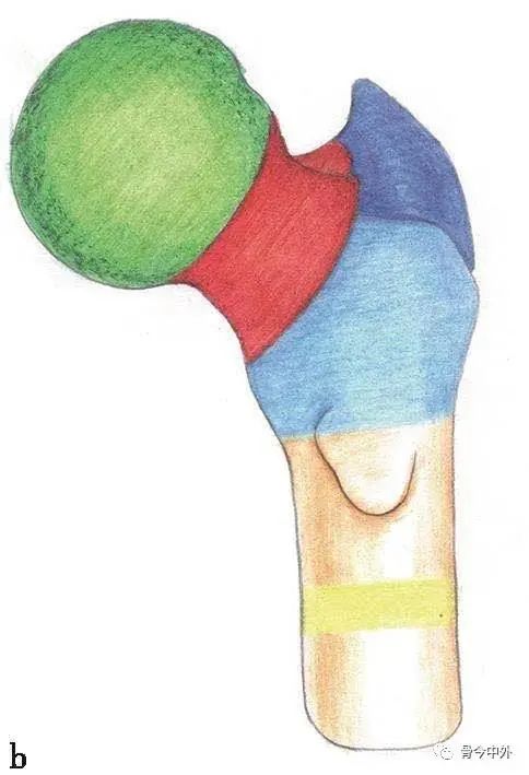 图1 股骨近端示意图a.股骨近端正位图;b.股骨近端侧位图