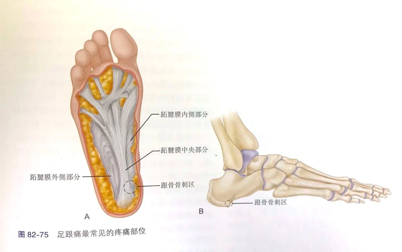 如果有所谓的跟骨骨刺,其位于第一肌肉层或者更深的固有肌层(如跖方肌)内,后者起自跟骨足底面。