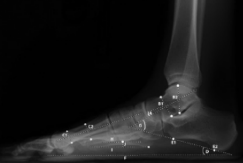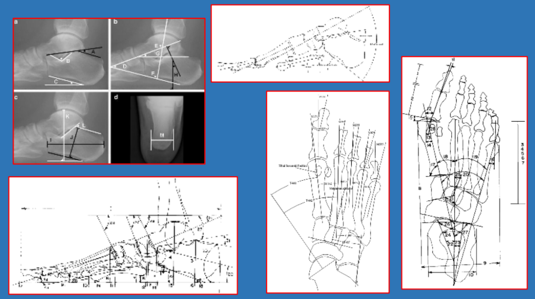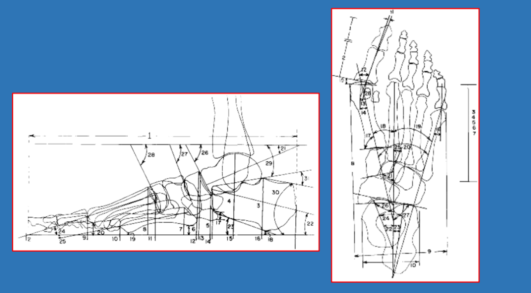 - 足踝部骨骼、关节多,参照点多—测量值多