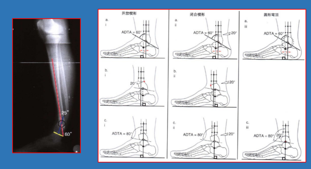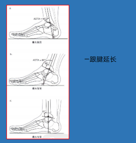 问题2:ADTA减小者,长期靠踝关节(跖屈40°~背伸20°)跖屈代偿,维持跖行。后方(跟腱)常有挛缩,纠正ADTA后,可能不能跖行。