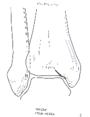 内踝间隙medial clear space如果在前后位或踝穴位X线片上测得内踝与距骨的间隙(medialclear space)大于4mm,无论X线片是否是在应力下拍摄,都表示有三角韧带的损伤