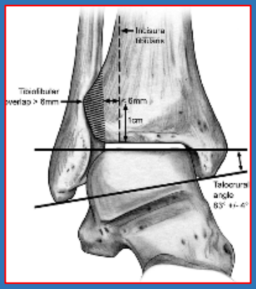 胫骨关节面后缘与距骨滑车关节面间距离: