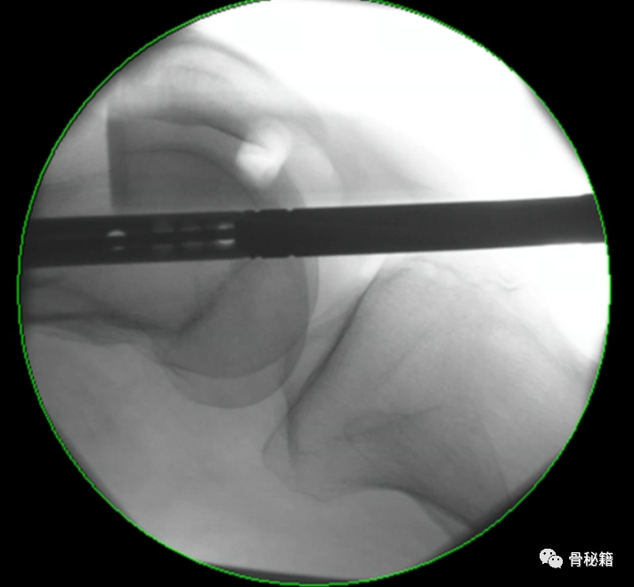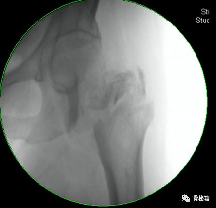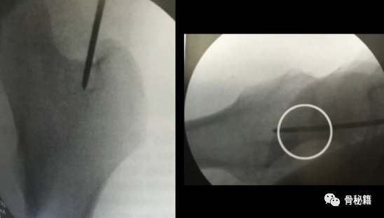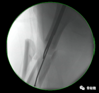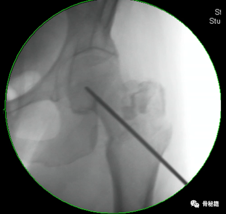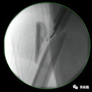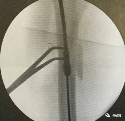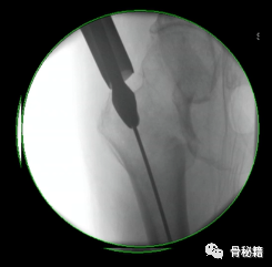 他在正侧位的透视位置我们可以看到位于髓腔中心的延长线上
