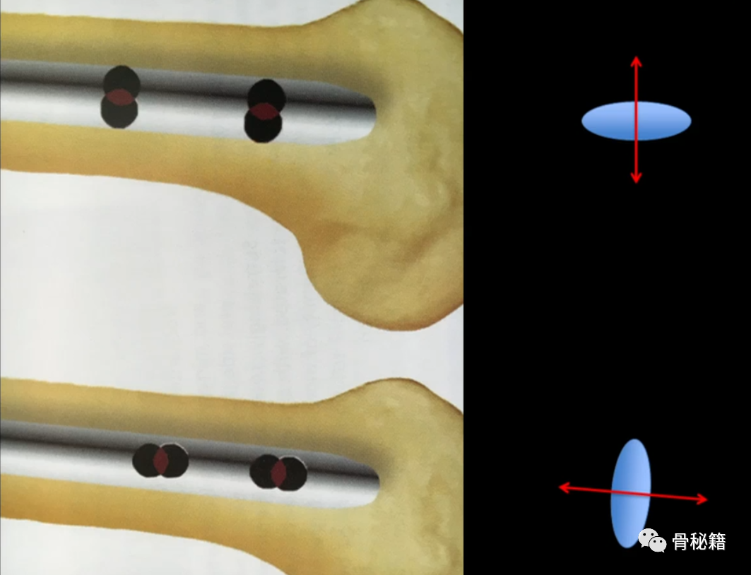 6最后提一点锁钉的小技巧,不要造成主任打主钉5分钟,我们锁钉2小时。我们透视的时候,要把锁定空透成两个圆形,但是在操作中往往是椭圆形,这个时候根据椭圆形的长轴来方向来移动C臂,就可以透一个好的圆形了,在此情况下完成锁钉就相对容易些。