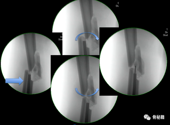 可以在偏前方植入一枚克氏针临时固定来进行复位辅助