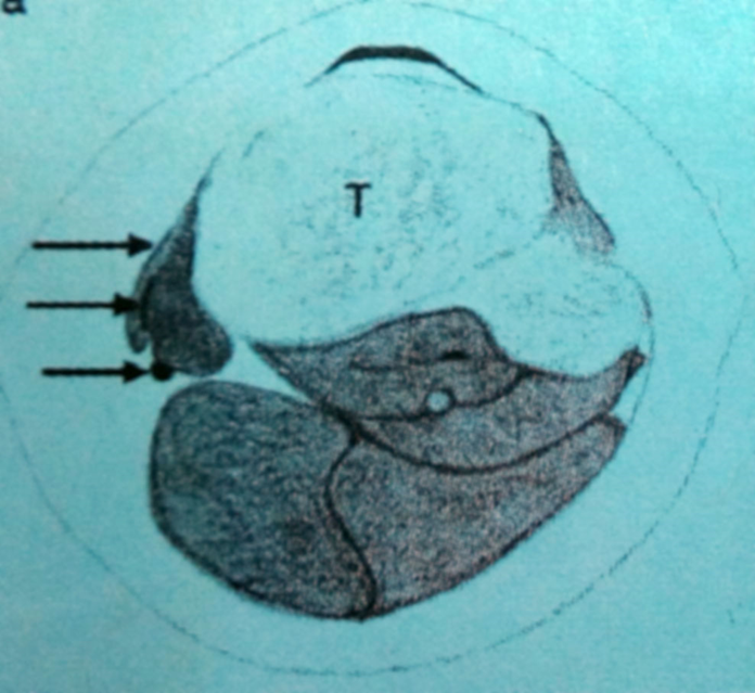 - 按其发生所在的部位分为半月板内型囊肿、半月板旁型囊肿、滑膜囊肿,以半月板旁型囊肿常见,发生于外侧半月板的囊肿较内侧半月板多。