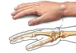 手腕部腱鞘囊肿 多发生于腕背侧,少数在掌侧。最好发的部位是指总伸肌腱桡侧的腕关节背侧关节囊处,其次是桡侧腕屈肌腱和拇长展肌腱之间。腕管内的屈指肌腱鞘亦可发生囊肿,压迫正中神经,诱发腕管综合征。少数腱鞘囊肿可发生在掌指关节以远的手指屈肌腱鞘上,米粒大小,硬如软骨。