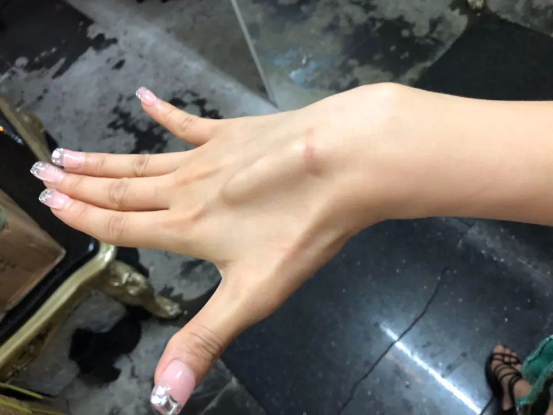 1、腕背侧、掌侧或足背等处出现半球形、表面光滑、张力较大的囊性肿块。