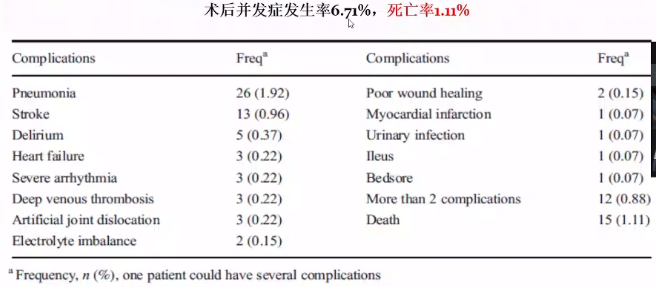 1. 椎管内麻醉和全身麻醉能否降低病死率存在疑问,但椎管内麻醉能够降低住院病死率,减少肺部并发症,缩短住院时间,减少伤口感染,减少深静脉血栓,因此常规首选椎管内麻醉。