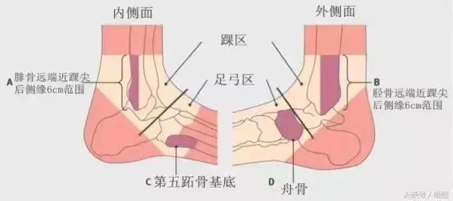 扭伤后,如果按压以上部位有明显的疼痛感,同时不能坚持行走一分钟,则需要高度怀疑是足踝部骨折。