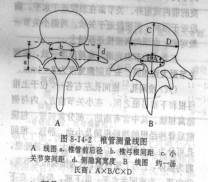 颈腰段椎管前后径:相对狭窄- 12~15mm绝对狭窄-小于10mm。