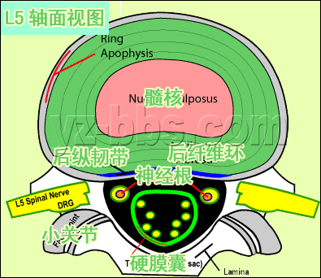 一个健康的45岁男性的L4椎间盘的轴状面观。