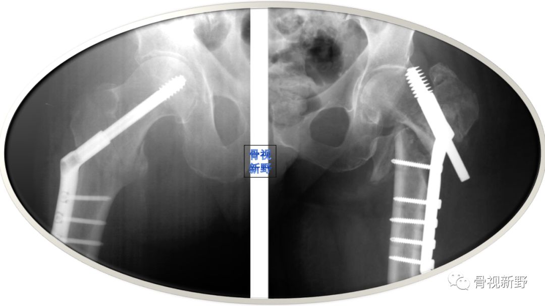 累及外侧壁的股骨近端骨折,如反转子及经转子骨折,如果使用滑动髋螺钉,由于缺乏外侧壁的骨性支撑,会发生股骨干向内侧移位及股骨近端骨块向外侧移位。这种移位会导致畸形、骨不连、头钉切出(cutout)。
