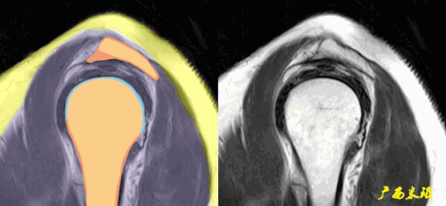 肩峰撞击并非仅指肩峰,撞击部位可以在肩峰前1/3前下面、喙肩弓、肩锁关节下面以及喙突,对应面是大结节、小结节,MRI阅片中要重点关注这些结果以及夹于其中的肩袖组织。