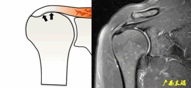 e.肱骨大结节骨赘增生,一般是较久的反复的撞击造成,一旦出现,肩袖撕裂的可能性极高。