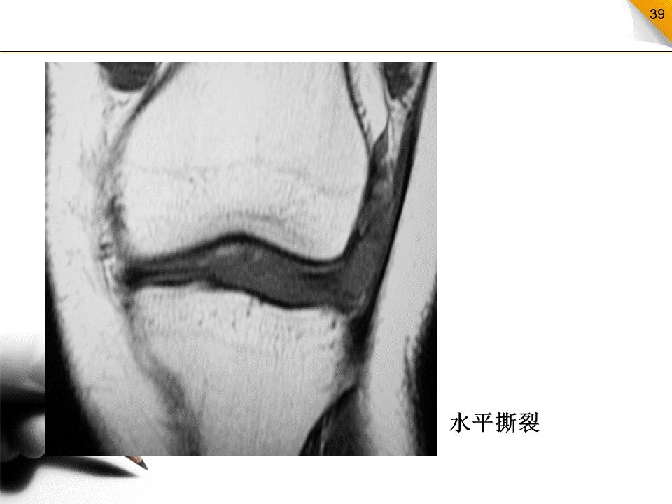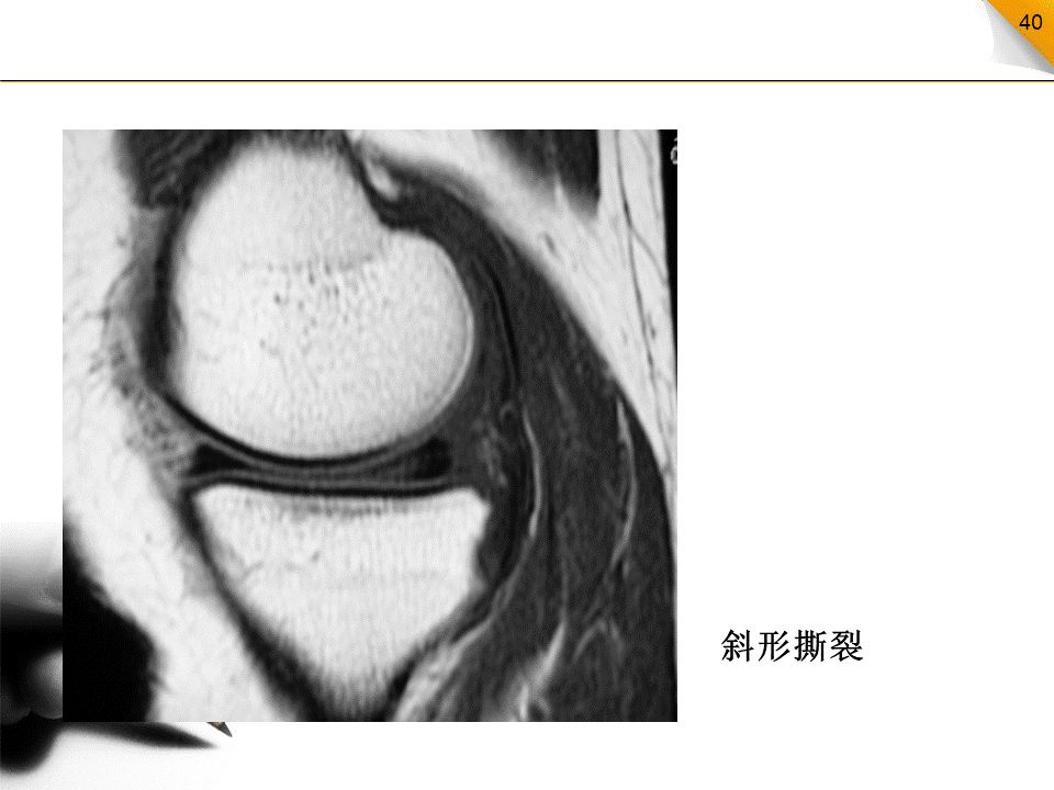 诊断半月板撕裂的注意点诊断以矢状面为主,但需结合冠状面横断面斜形撕裂是最常见类型,但半月板体部的斜行撕裂在冠状面显示较矢状面为好。水平撕裂较少见,有时作为半月板囊肿的伴发症出现。