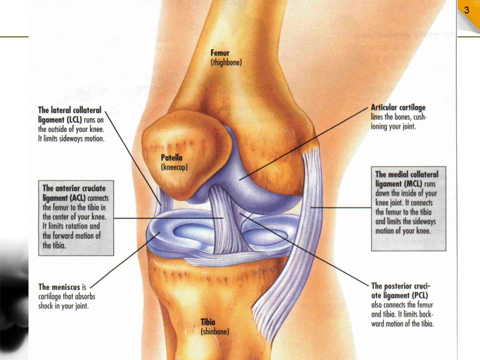 膝关节:结构最复杂、损伤最多的关节组成:内、外侧胫股关节和髌股关节包括:骨、半月板、韧带、肌腱、软骨、滑膜等结构