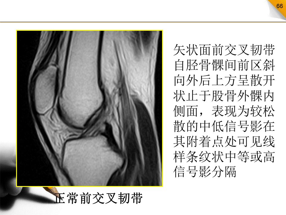 - 可整段显像髌韧带、前后交叉、外侧附韧带结构