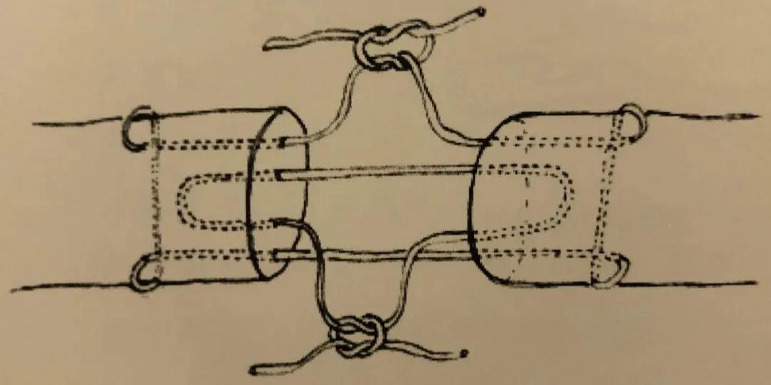 (5)结扎缝线:将相邻穿出的两根线结扎,使线结陷入肌腱表面。线结是缝合的弱点,应该使之陷入肌腱内而受到的张力最低。