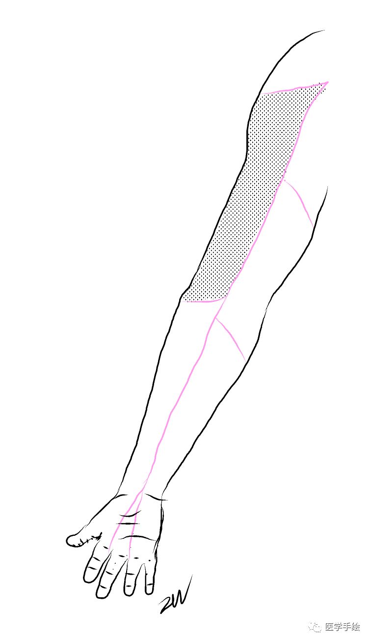 颈5/6椎间盘突出临床常见,常常累及到C6神经根。本期医学手绘介绍C6神经根的定位。C6神经根的定位概括如下:肌肉:伸腕(桡侧腕伸肌和尺侧腕伸肌)、肱二头肌(部分支配)反射:肱桡肌反射感觉:前臂外侧、拇指、示指
