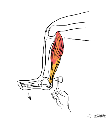 腓肠肌-比目鱼肌:力量强大,检查出力弱很困难。可令患者单腿站立,利用足趾站立起来,连续5次,不能完成表明腓肠肌麻痹。