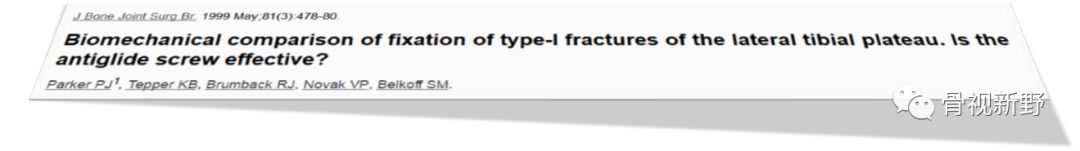 Jordan MC等人(2016)对人工骨胫骨平台骨折模型进行上方“ 栅栏螺钉”、“常规螺钉”及“L”形buttress钢板固定方式的生物力学比较研究发现固定强度的次序:Buttress钢板>栅栏螺钉>平行螺钉
