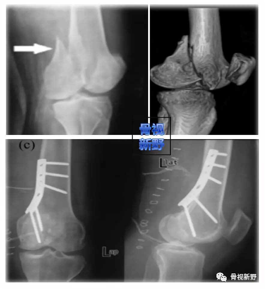 - 复杂骨折:合并股骨髁上、髁间骨折或双髁Hoffa骨折时,入路、固定方式等得全局考虑、权衡兼顾。