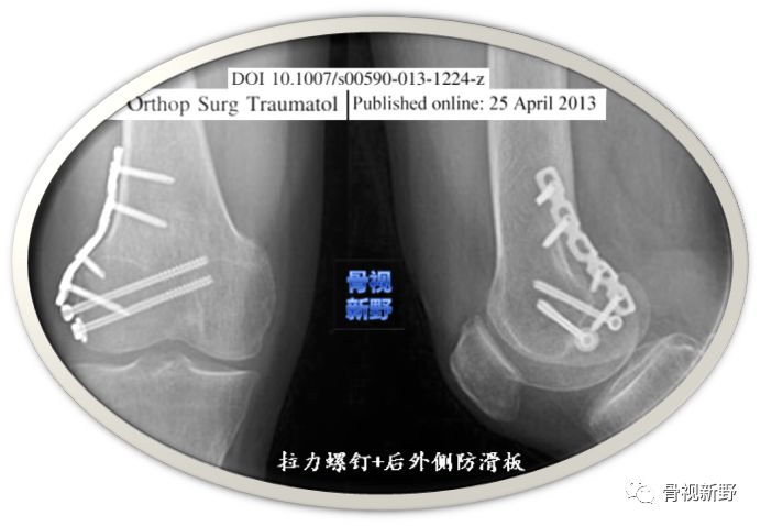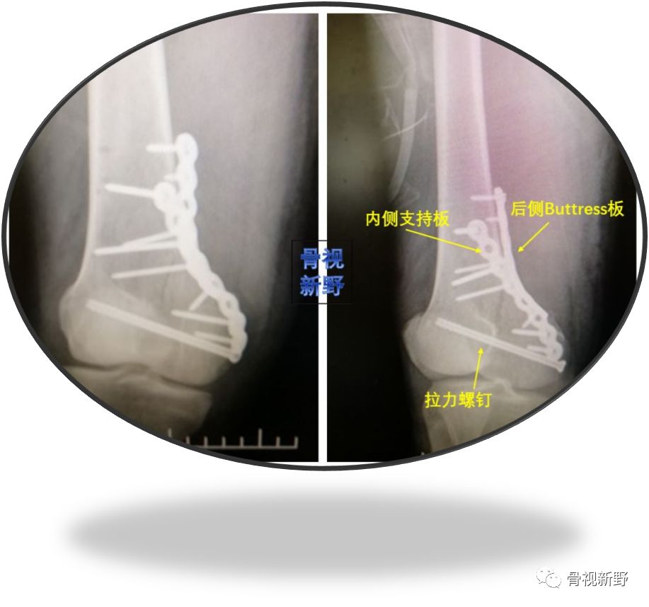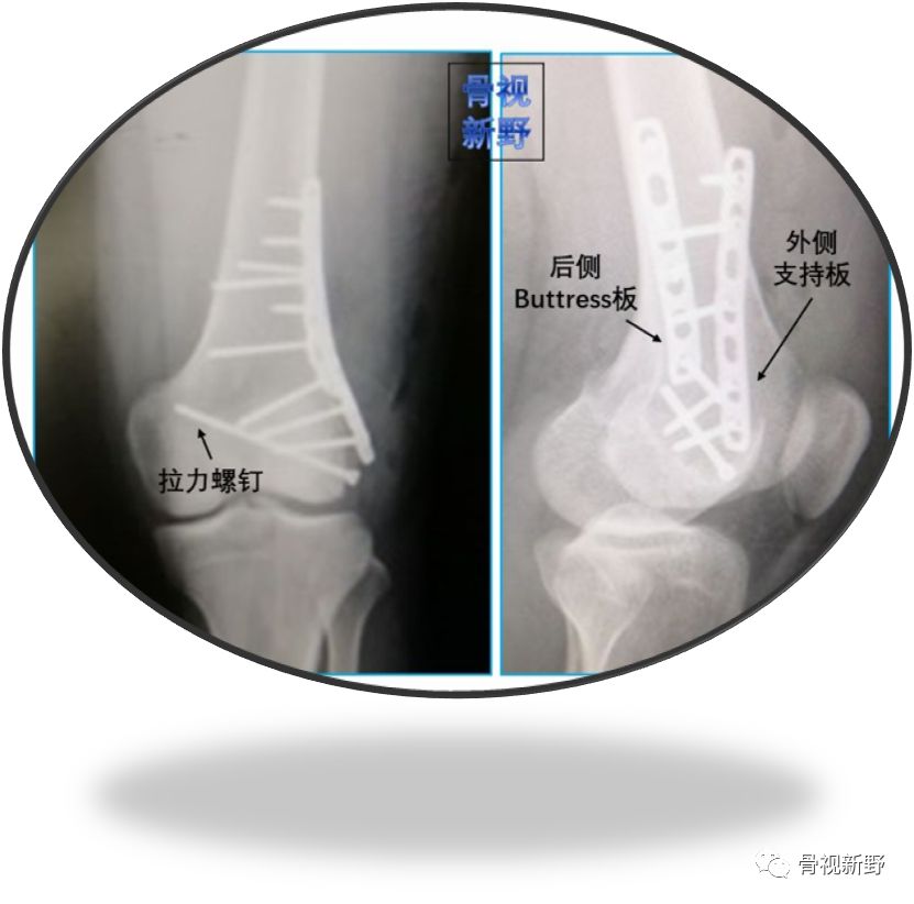 小直径拉力螺钉+LCP侧方支持钢板+后方Buttress钢板