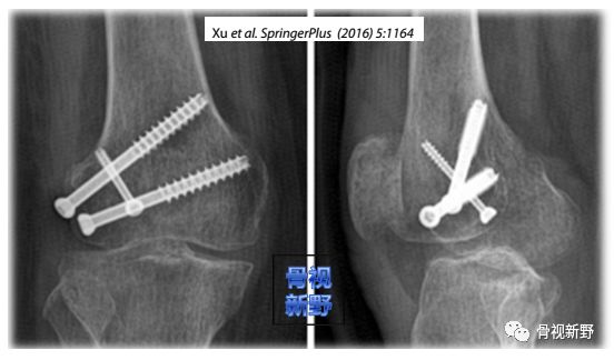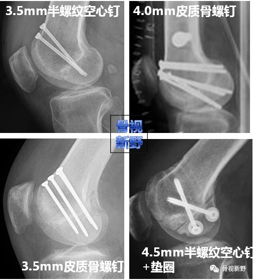 在诸多螺钉固定失败的经验教训及在Buttress支理念支持下,各种拉力螺钉+钢板的组合应用均有报道,但总体以小直径拉力螺钉+小钢板支持或保护固定(后方/侧方)为主流趋势: