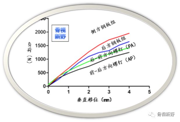 结果发现,固定强度:钢板固定组(后方或侧方)总体的轴向强度高于单纯螺钉固定组;侧方中和板组能提供最大的固定强度、后方buttress钢板组次之;而螺钉组,PA组明显强于AP组。