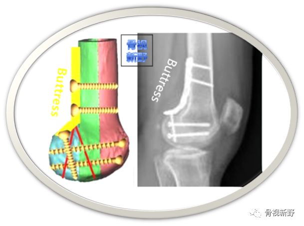 小直径拉力螺钉+侧方支持钢板+后方Buttress重建钢板