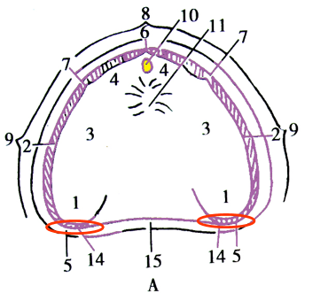 上颌正中线前端硬腭上,左右侧各有3~4条前后横行排列的波浪形凸起粘膜。有辅助发音的作用。