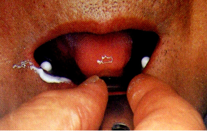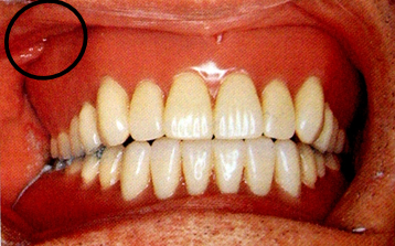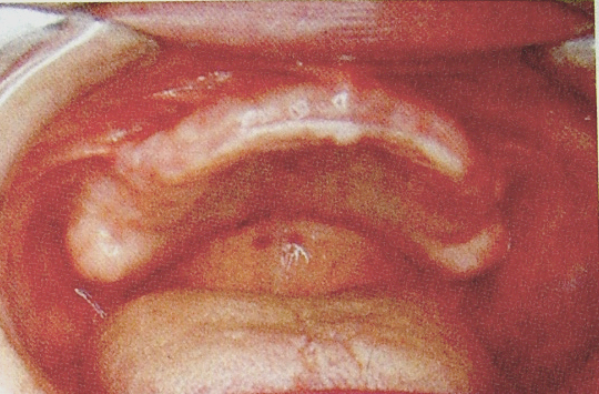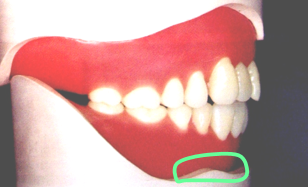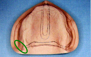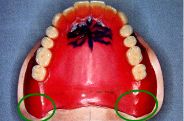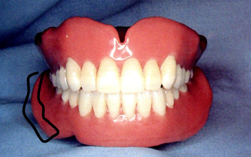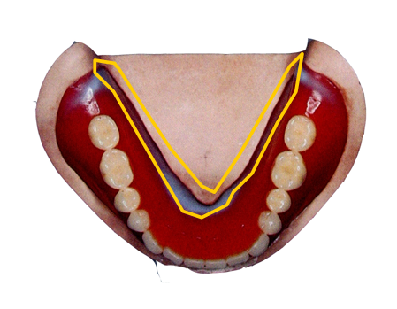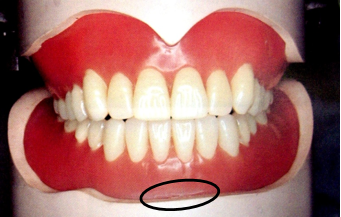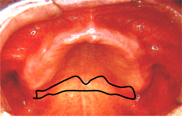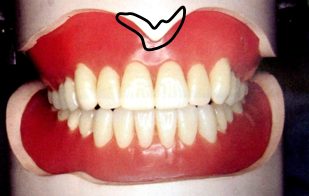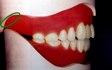取印模时患者作唇的自主运动,并做肌功能修整,基托在此区应形成相应的切迹。