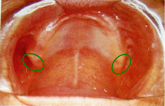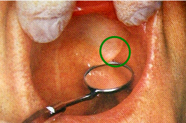 口内粘液腺导管的开口,位于上腭中缝后部的两侧。