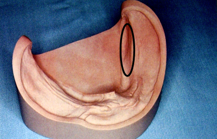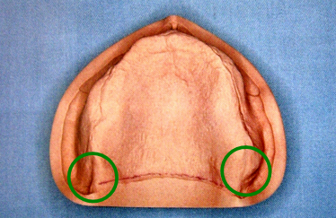 ⑤后堤区: 腭小凹后方,轻压颤动线以获得良好的封闭。
